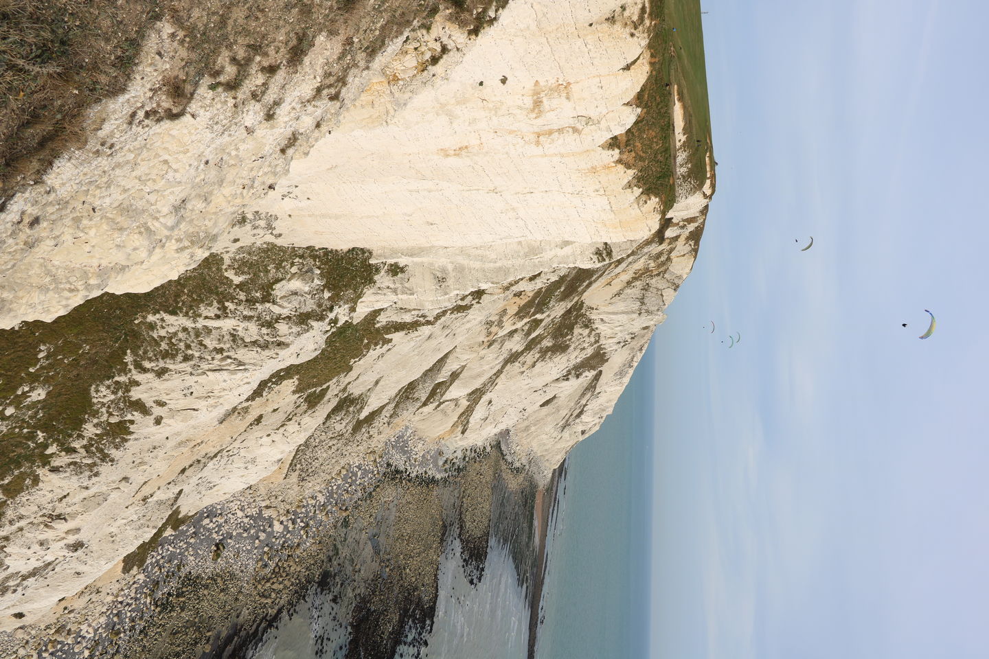 On peut ensuite rejoindre le haut de la colline pour observer les magnifiques falaises de craie blanche et hautes d’un peu plus de 160m.